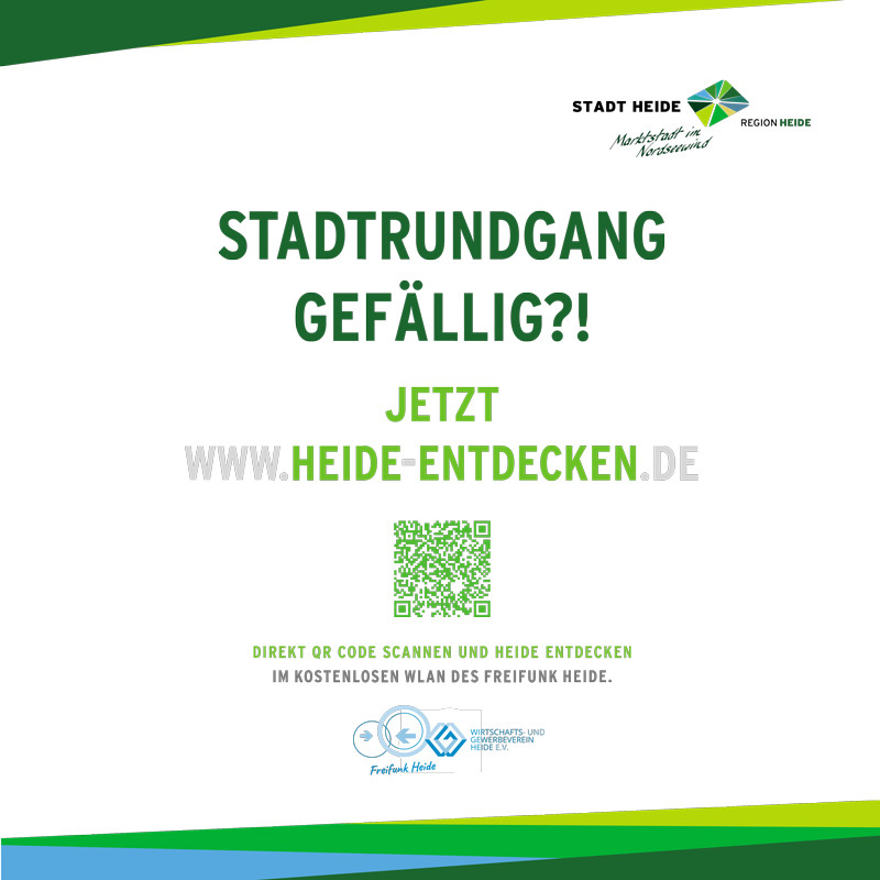 Ziel der Stadt Heide war es, ein digitales touristisches Angebot zu schaffen, welches die Sehenswürdigkeiten und das kulturelle Angebot der Stadt Heide erlebbar macht. Gemeinsam mit MAQNIFY wurde ein Rundweg mit 10 Stationen konzipiert, der sowohl die Tourist-Information als Ausgangspunkt hat, als auch von jeder Station einen individuellen Einstieg in einen Rundweg ermöglicht. Um auch internationale Besucher in Heide zu informieren wurde der Rundgang auf Deutsch, Englisch und Dänisch angelegt. Dadurch wird auch die besondere Verbundenheit mit den dänischen Partnern und die Wertschätzung der regelmäßigen dänischen Besucher zum Ausdruck gebracht.